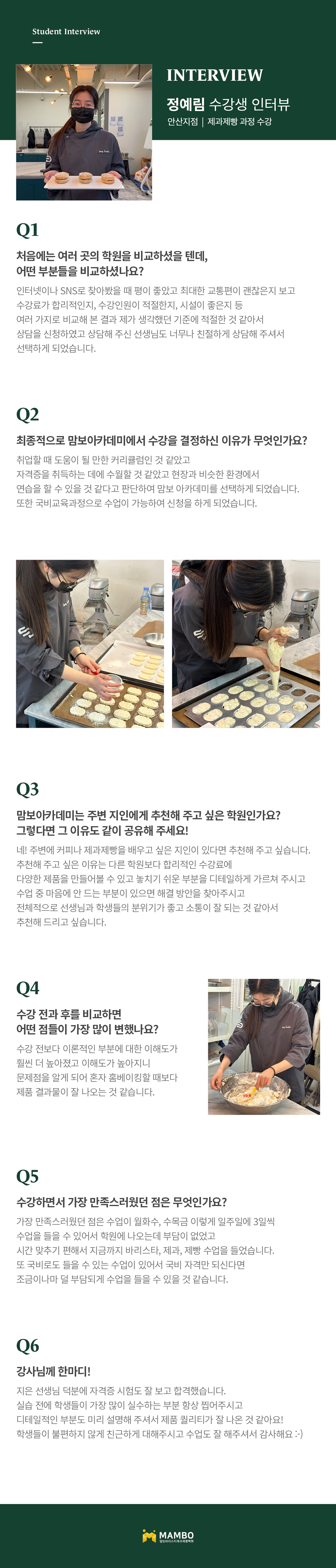 교육의 기반을 달리하여 학생의 기회를 잡아주며 직원의 기강이 태만하지 않은 맘보바리스타제과제빵학원